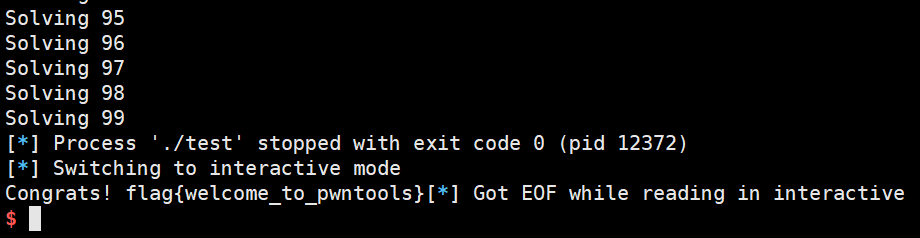 printf("Congrats! flag{welcome_to_pwntools}");